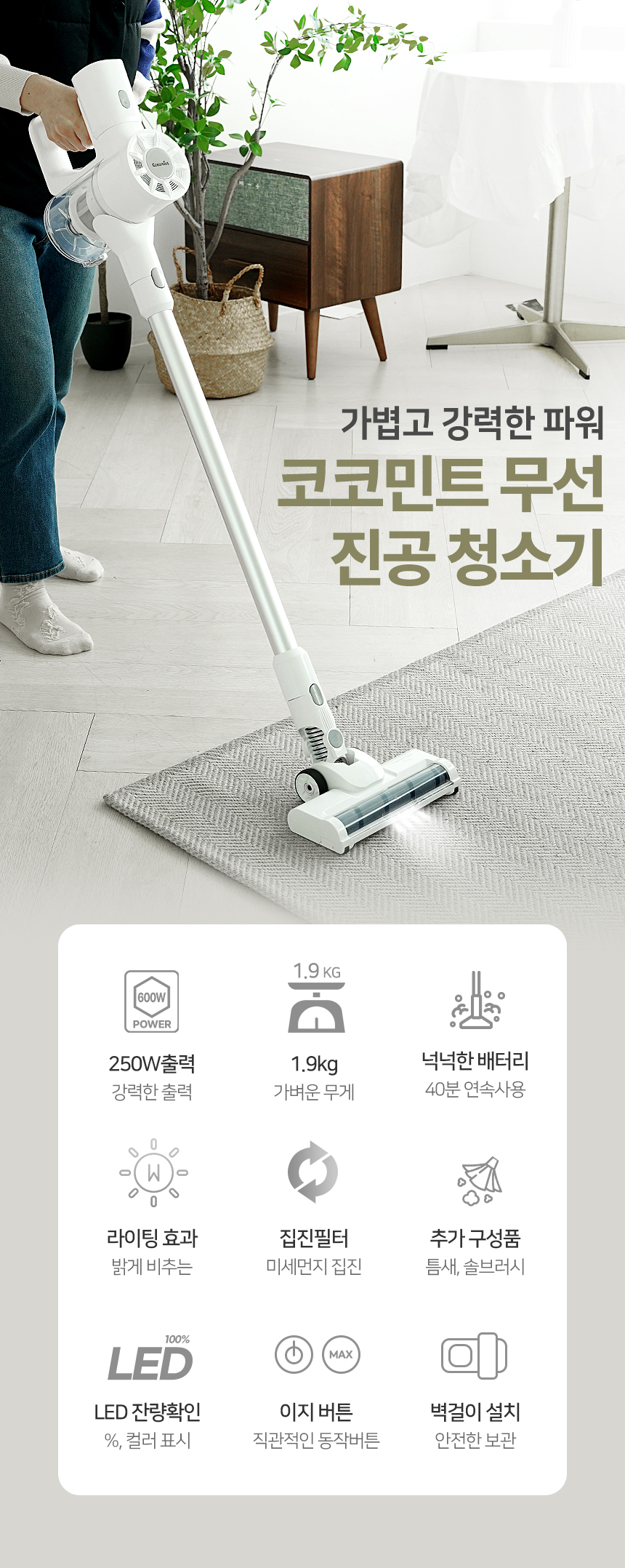 코코민트 BLDC 차이슨 무선 청소기 OP-050R